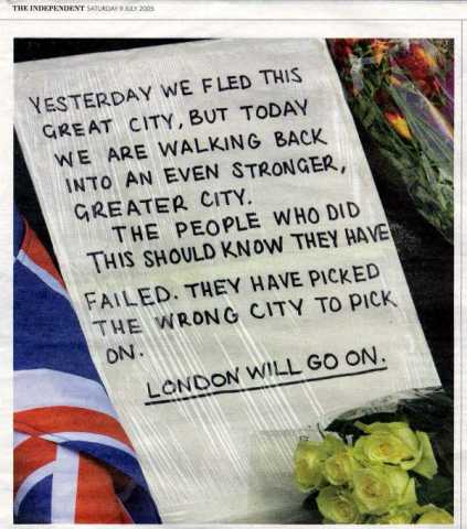 It is obvious that the effects of today will be felt for many years here, and that they will echo around the world beyond. What might not be so clear from afar, but is every bit as true, is that they can close the stations in London, shut down the Tube, blow up the buses, bomb out the offices, and yet the people here will continue to find a way to carry on.