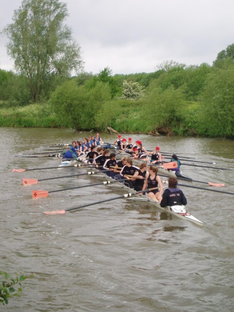 That’s easy – they all line up one behind the other, and they chase each other hell for leather instead. And if one boat succeeds in catching another, then those two swap places in the line next day, and over four days a crew can rise up or fall through the divisions accordingly.
