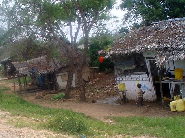 village-houses-roadside-kenya.jpgBut don’t have any illusions. These aren’t houses – not as you or I would know them. No doors, or windows, no garden path. A slab of corrugated iron here, a scrap of chicken wire there. An earthen floor. No mosquito nets. No electricity either.