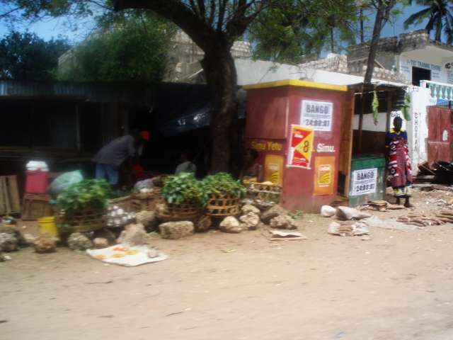 shopping-centre-kenya.jpgRickety stalls and shacks stand in the mud beside the street, selling tourist knick-knacks for a dollar or two. Old men and women ease their worried looks and smile a commercial welcome as I pass.
