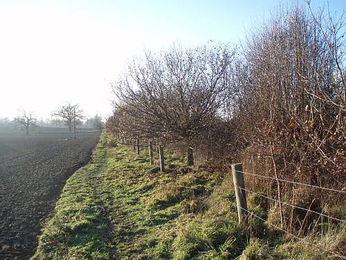 The A24 road hides its coastbound stream of traffic behind the trees, whilst ahead the horizon rises towards fresh-ploughed fields and the blue-remembered hills of the North Downs far beyond.