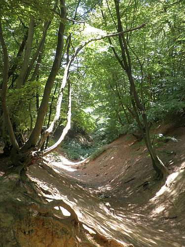 I’ve cycled here a dozen times before, but now I see that this valley, Jelley’s Hollow, is as tight and steep as any sunken lane in Surrey — worn deep into soft Greensand across the centuries by countless feet and wheels.
