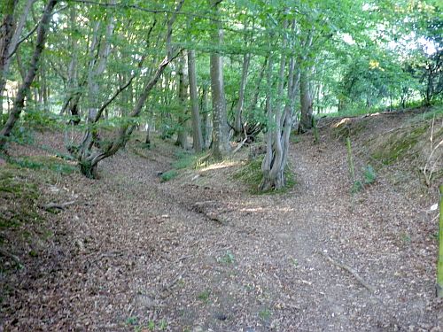 But on foot, amongst the trees, a treasure trove is revealed — a 2,000 year-old sunken lane with accompanying ditches and aggers running parallel for much of the way.