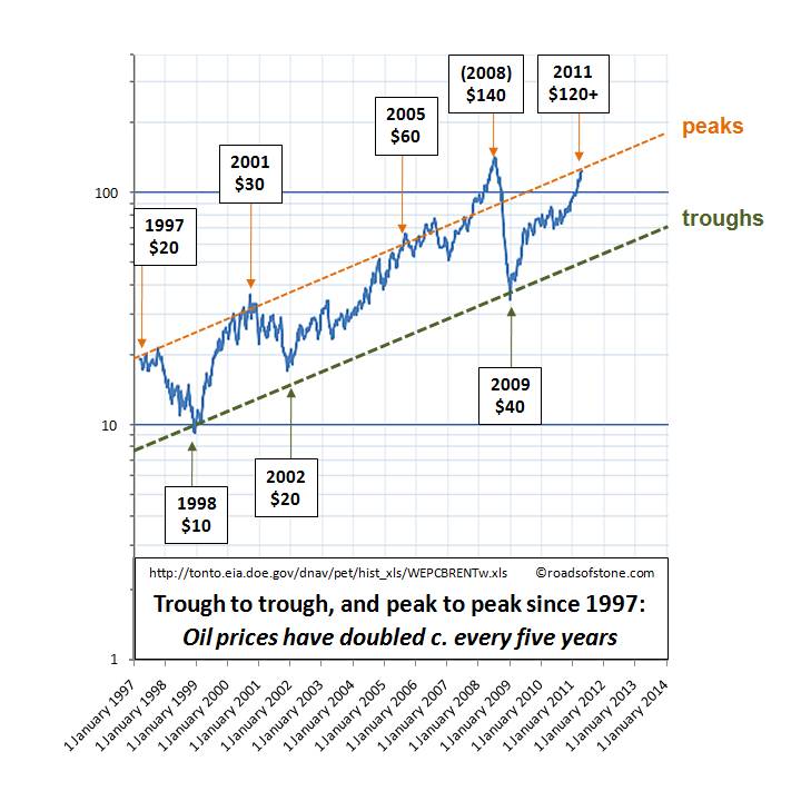 brent crude oil price 1997 to 2011 eia log scale  roadsofstone